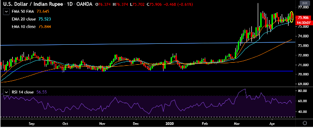 - It made intraday high at 76.37 and low at 75.70 marks.