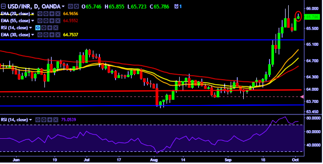 - Key resistances are seen at 65.98, 66.20, 66.46, 66.68 and 66.79 marks respectively.