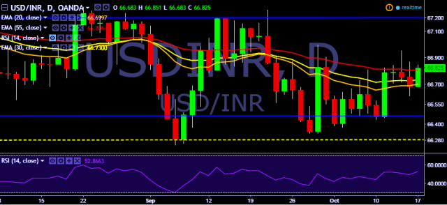 We prefer to take long position in USD/INR only above 66.87, stop loss at 66.61 and target of 67.05/67.16.