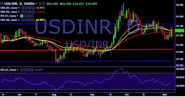 - USD/INR is currently trading around 64.90 marks.