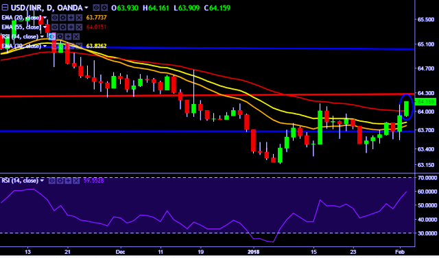 - Key resistances are seen at 64.12, 64.28, 64.40 and 64.58 marks respectively.