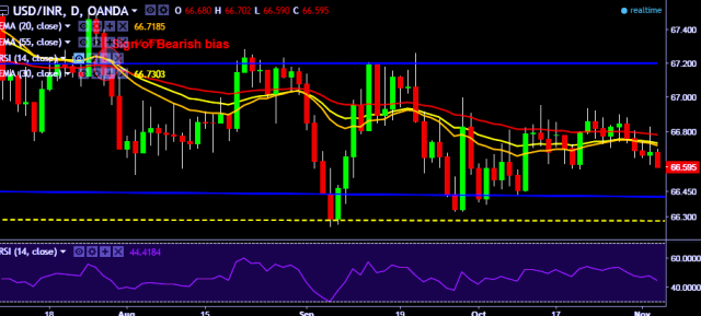 - Intraday bias remains bearish till the time pair holds immediate resistance at 66.83 marks.