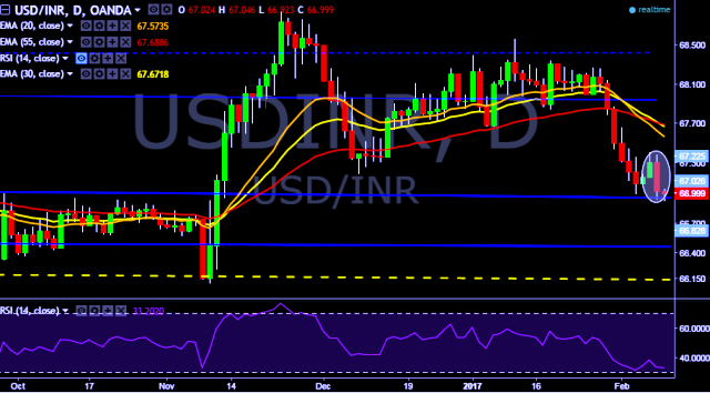 We prefer to take short position on USD/INR around 67.05, stop loss at 67.22 and target of 66.92/66.82.