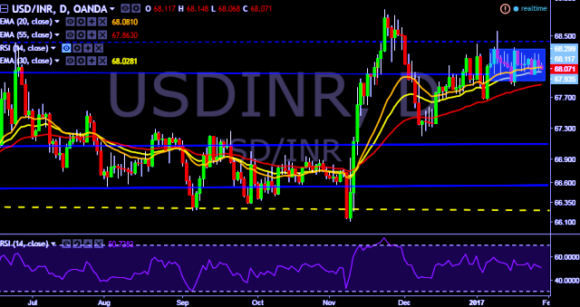 We prefer to take short position on USD/INR around 68.10, stop loss at 68.26 and target of 67.99/67.85.