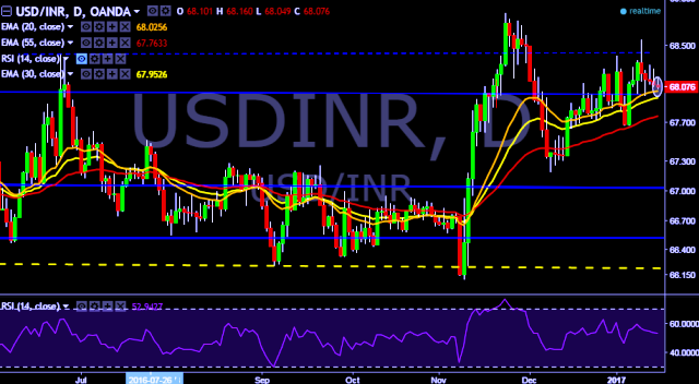 We prefer to take short position in USD/INR around 68.10, stop loss 68.26 and target of 67.99/67.85.