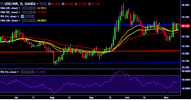 - Key resistances are seen at 65.30, 65.48, 65.72, 65.85, 65.98, 66.20, 66.46, 66.68 and 66.79 marks respectively.