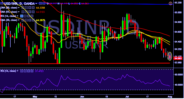 We prefer to take short position in USD/INR around 64.10, stop loss at 64.25 and target of 63.65.