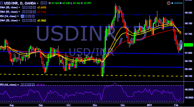 We prefer to take short position on USD/INR around 67.35, stop loss at 67.45 and target of 67.07/66.99/66.82.