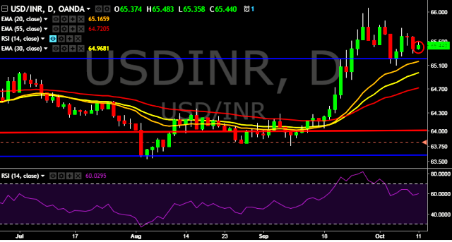- It made intraday high at 65.48 and low at 65.35 marks.