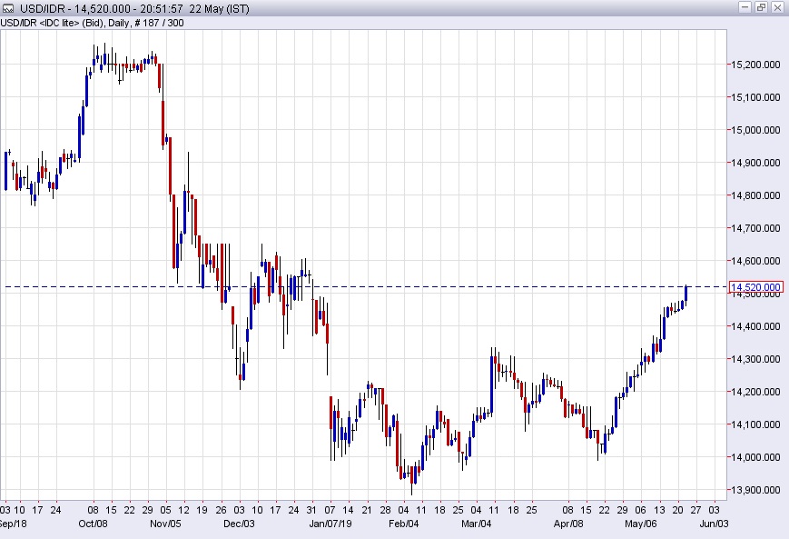 Since the election, largely due to political tensions in the country, Indonesian Rupiah has declined 3.7 percent against the USD and today it reached 14520 per USD, the worst level since December 2018.
