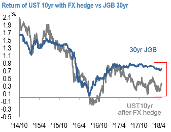 In addition, this would support our view that USDJPY will remain in a range between 103 and 115 as the bottom would be supported by the possible outward flows. Separately, the average higher end of expected UST 10 year yields is 3.3-3.4%. If the UST yields continue to rise and approach the higher end level, or even just stay as high as now, it might encourage outward investments in foreign bonds.