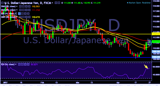 - It made intraday high at 111.40 and low at 110.99 levels.