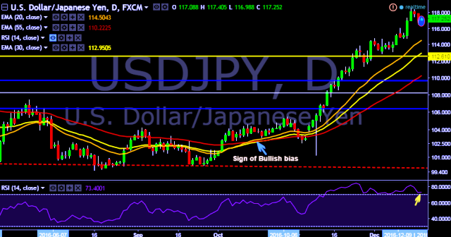 - It made intraday high at 117.40 and low at 116.98 levels.