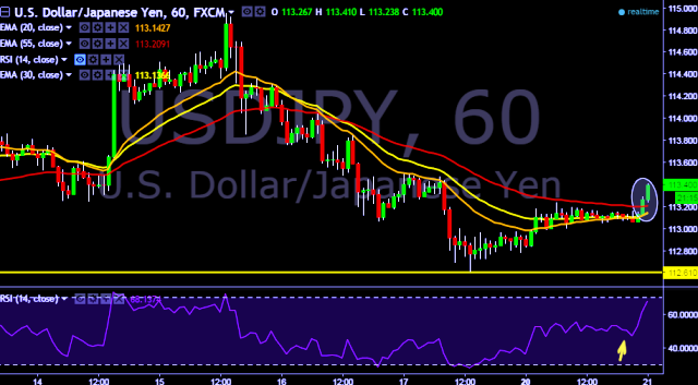- It made intraday high at 113.41 and low at 113.07 levels.