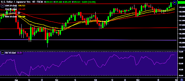 - It made intraday high at 109.60 mark and low at 109.49 levels.