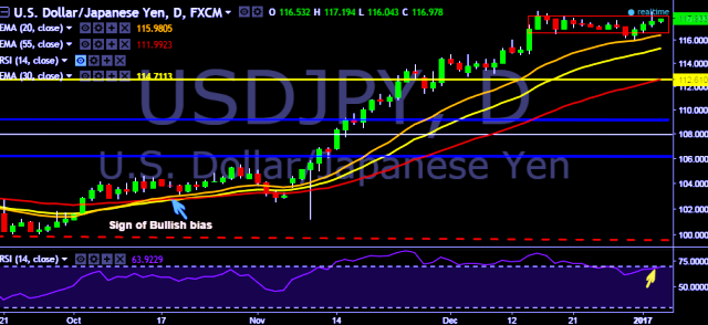 - It made intraday high at 117.85 and low at 117.54 levels.