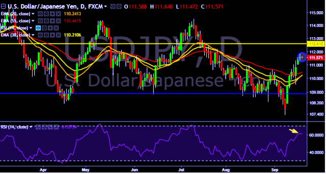 - It made intraday high at 111.64 and low at 111.47 levels.