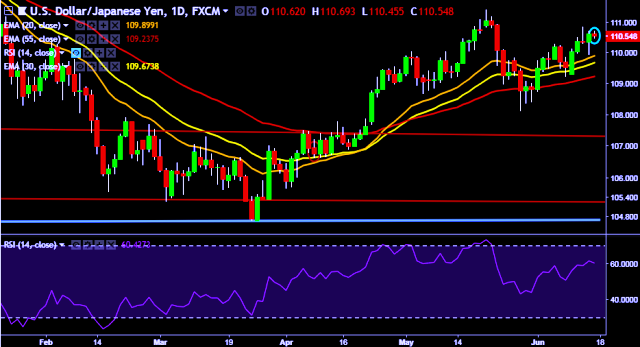 - It made intraday high at 110.69 and low at 110.45 levels.