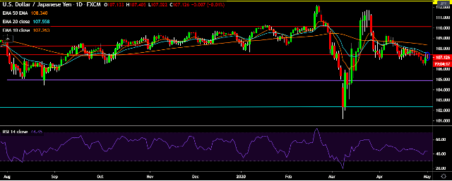- USD/JPY is currently trading around 107.13 marks.