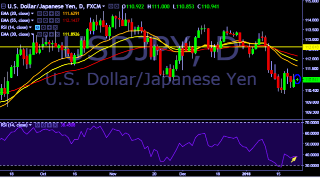 - It made intraday high at 111.00 and low at 110.85 levels.