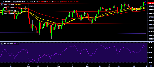 - It made intraday high at 109.55 mark and low at 109.33 levels.