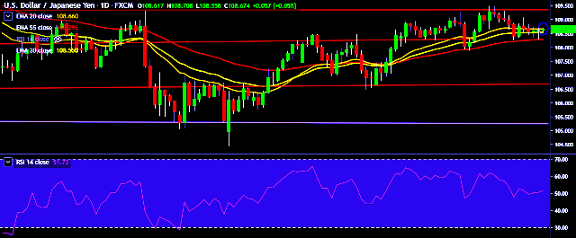 - It made intraday high at 108.70 mark and low at 108.55 levels.