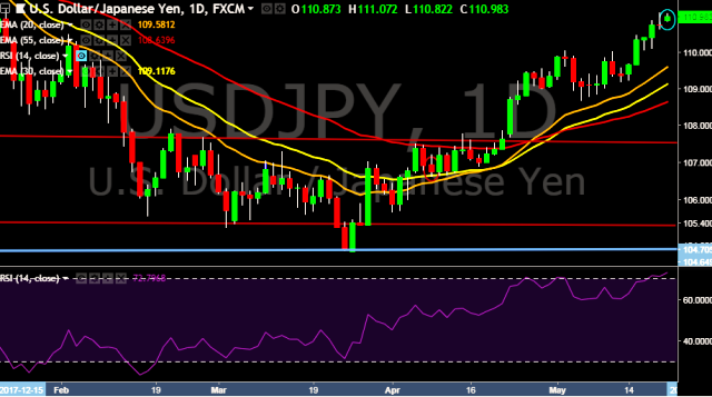 - It made intraday high at 111.07 and low at 110.88 levels.