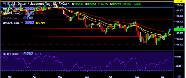 - It made intraday high at 107.63 and low at 107.47 levels.