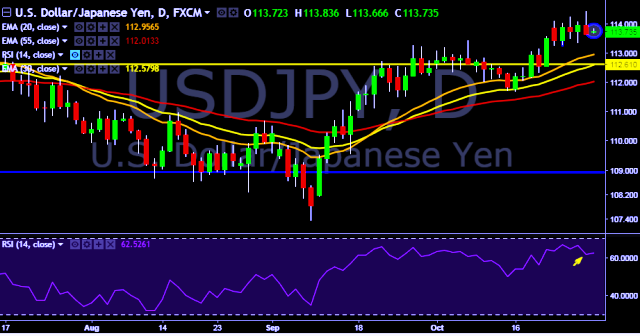 - It made intraday high at 113.83 and low at 113.66 levels.