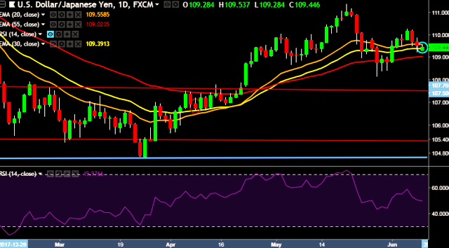 - It made intraday high at 109.53 and low at 109.28 levels.