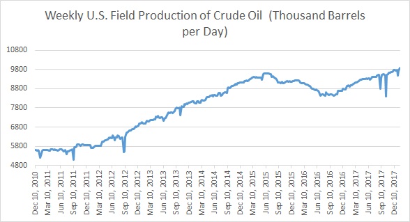 - Chart 1 shows crude oil production in the United States which has reached an all-time high last year, rose sharply to 9.88 million barrels per day last week compared to 9.49 million barrels per day in the week before.