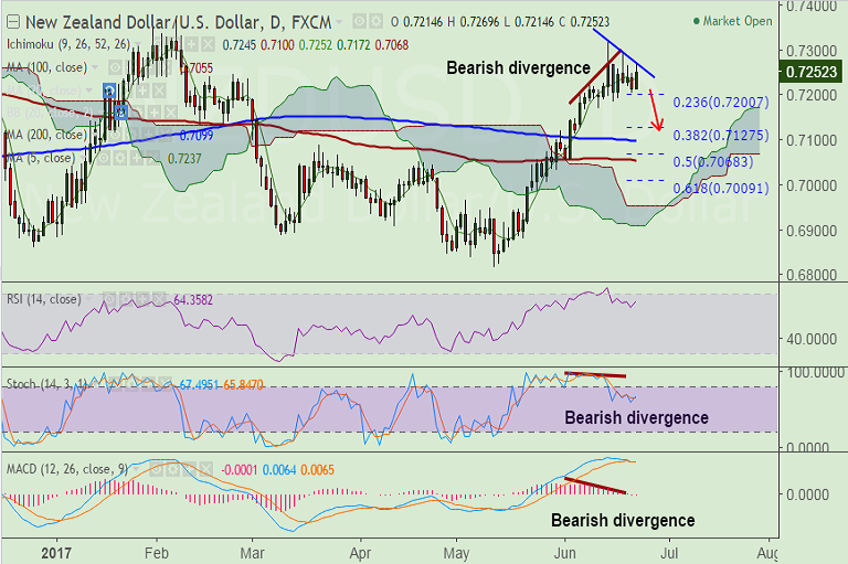 Support levels - 0.7237 (5-DMA), 0.72 (23.6% Fib of 0.6817 to 0.7319 rally), 0.7185 (June 15 low)