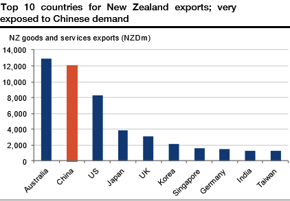 Fading Chinese growth and commodity prices remain a major risk for commodity currencies. More specifically, China remains the second destination for NZ exports, just after Australia and before the US. Any slowdown in Chinese demand will weigh on NZ growth and reduce the inflows, therefore weighing on the currency. We expect NZDUSD to fall to 0.64 by end-2017.