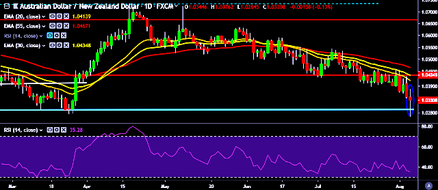 - AUD/NZD is currently trading around 1.0327 marks.