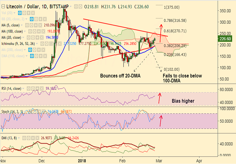 - LTC/USD has bounced off 20-DMA support in last week's trade.