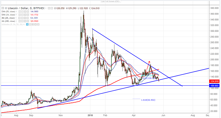 FxWirePro: LTCUSD break trend line support around 127, dip till 109 likely