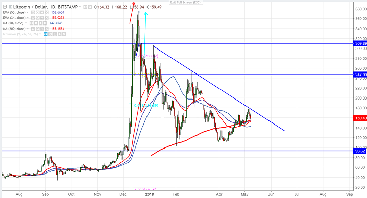 - LTC/USD has declined almost more than 15% after a minor jump above trend line resistance. It haas jumped till 183.59 and hits low of 156.94. The pair has formed major double bottom around 109 and any major weakness only below that level.It is currently trading around 159.13.