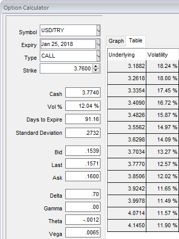 Yesterday, USDTRY traded up to 3.8080 on the onset of the news and retraced to 3.7210 currently. Buy the tail: Relative to recent history, implied vol and risk reversals are not high. Current 3m implied vol (12.5) could spike to the 16-20 area if accelerated depreciation did occur, while risk reversals could easily rise by 1-2 vol points.