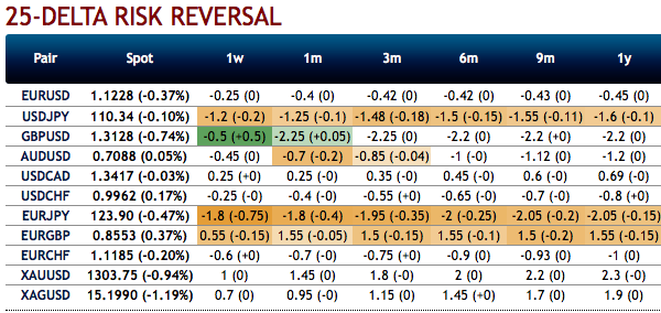 Please be noted that the positively skewed IVs of 3m XAUUSD contracts are still indicating the upside risks. One could see a bullish risk reversal setup. To substantiate the above bullish sentiment, risk reversal (RRs) numbers indicate an overall bullish environment.