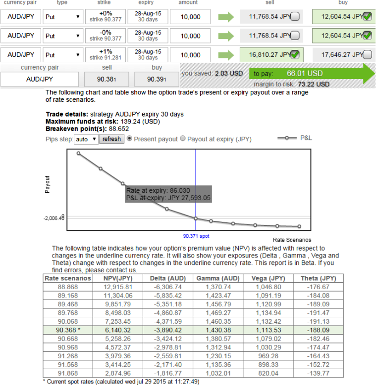As shown in the figure purchase 1M 2 lots of At-The-Money -0.52 delta puts and sell 1M one lot of (1%) In-The-Money put option in the ratio of 2:1.