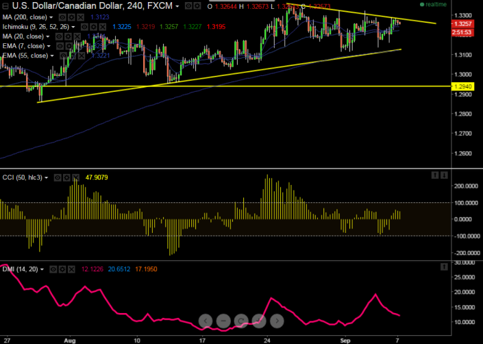 USD/CAD is trading in narrow range 1.3325 and 1.3125 for the past three trading session. Any trend reversal can happen only above or below the channel.