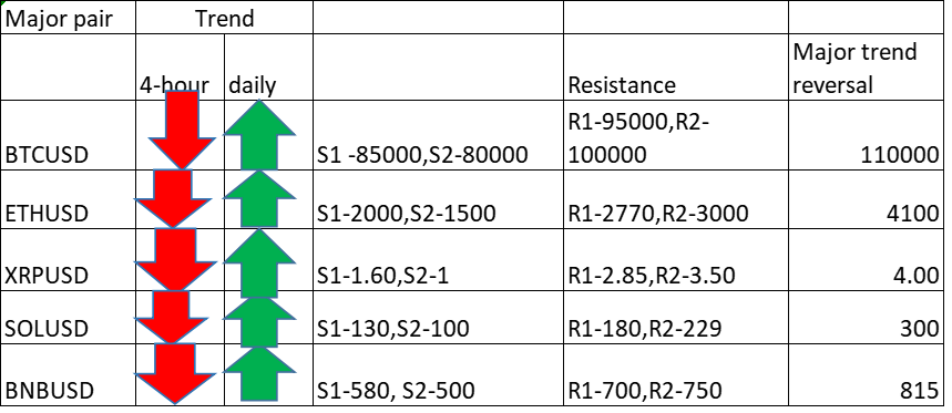 FxWirePro- Major Crypto levels and bias summary