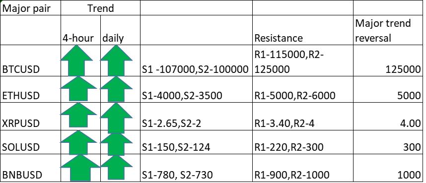 FxWirePro- Major Crypto levels and bias summary