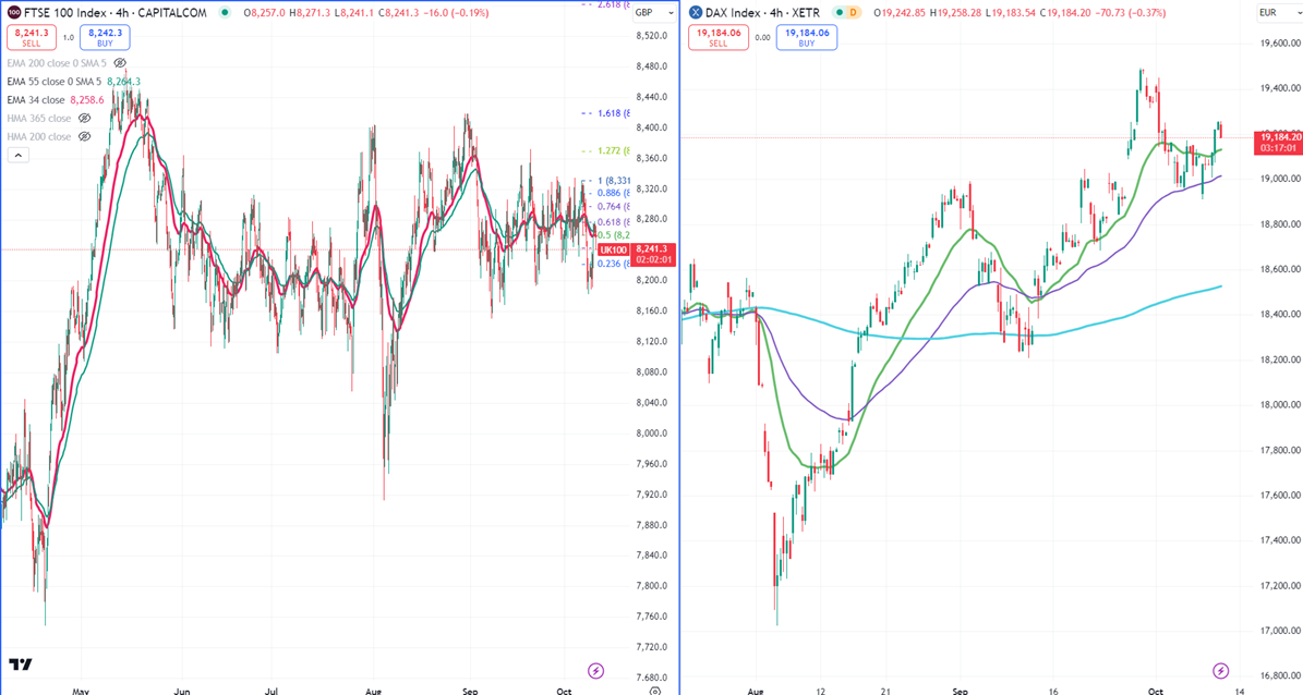 The pair hold above short-term (34 EMA, above 55 EMA) and above long-term (200 EMA) in the 4-hour chart.