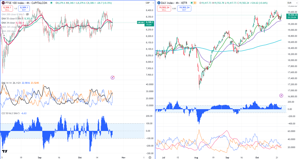The pair hold above short-term (34 EMA, above 55 EMA) and above long-term (200 EMA) in the 4-hour chart.
