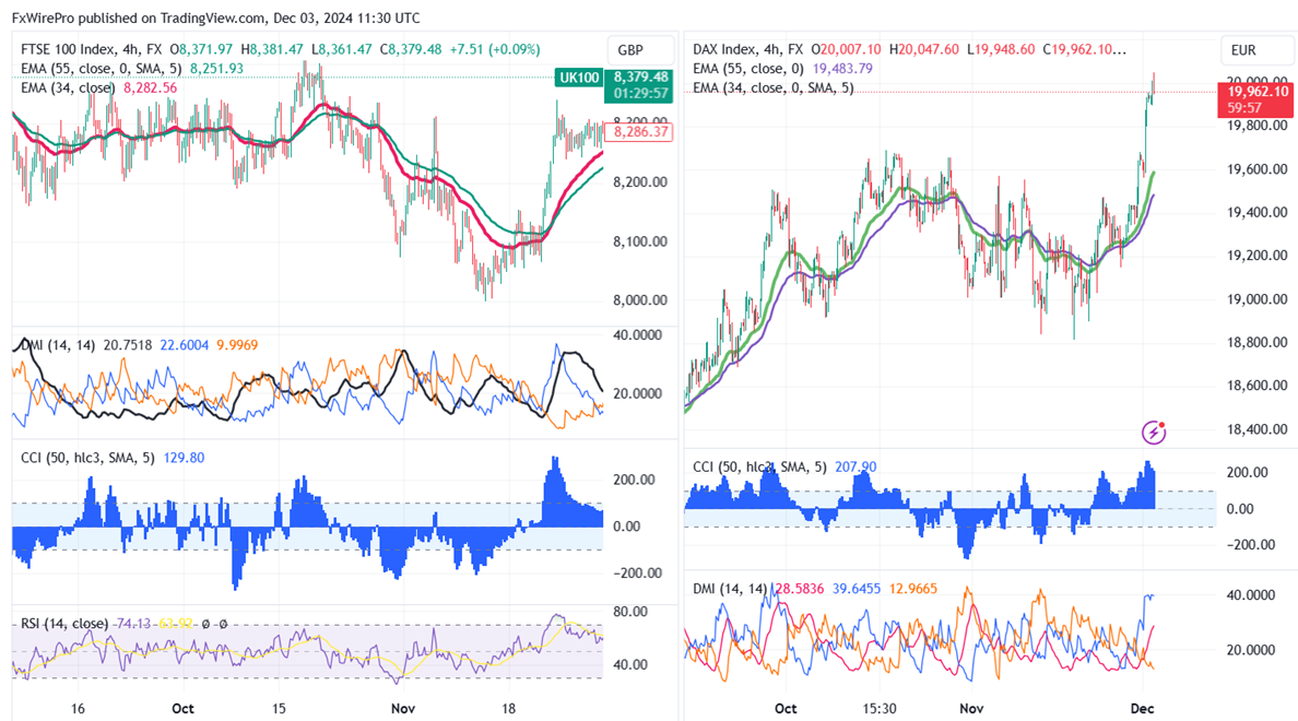 The pair hold above short-term (34 EMA, above 55 EMA) and long-term (200 EMA) in a 4-hour chart.