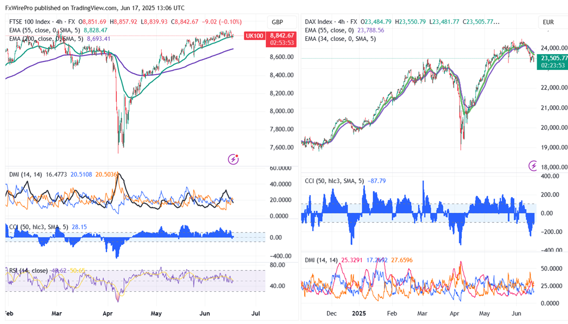 The pair holds above short-term (34 EMA, above 55 EMA) and long-term (200 EMA) in a 4-hour chart.