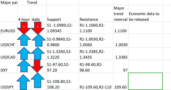 Major Pair levels and bias summary