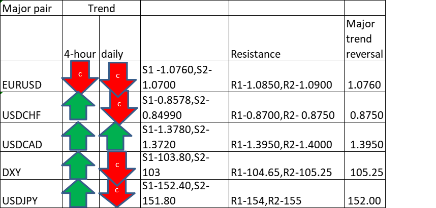 Major Pair levels and bias summary
