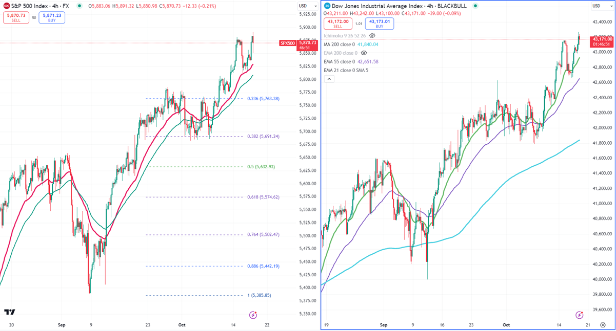 The pair holds above short-term (34, 55 EMA) and long-term (200 EMA) in the 4-hour chart.